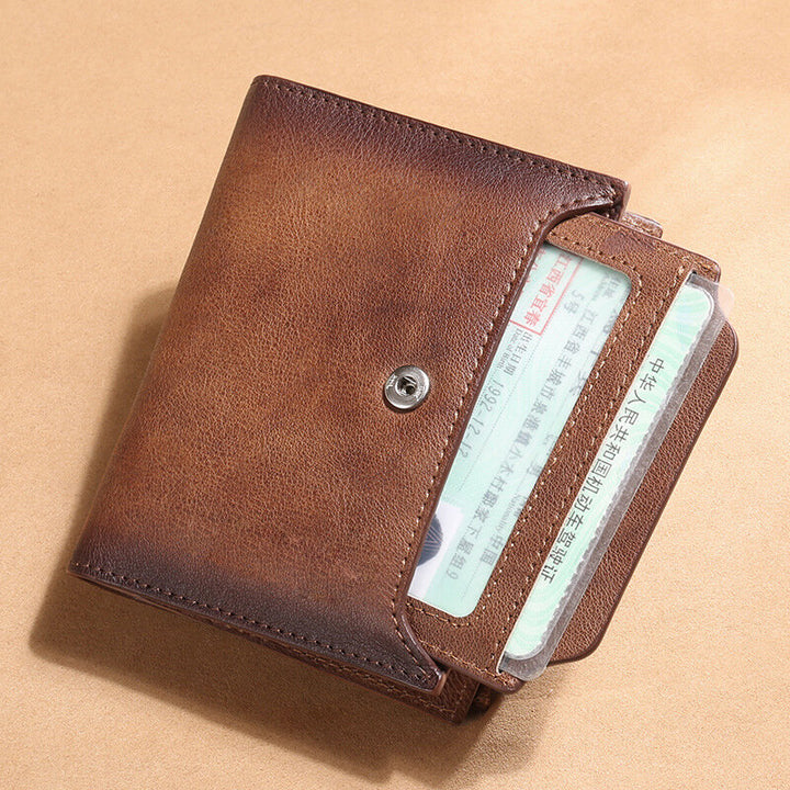 Men Genuine Leather Bifold RFID-Blocking Retro Coin Purse Driver's License Wallet