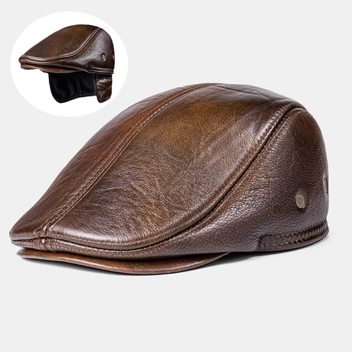 Men Genuine Leather Warm Thickness Cotton Windproof Ear Protection Hat Beret Hat